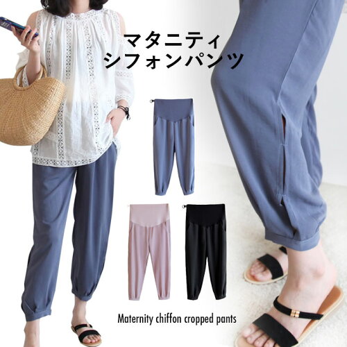 【送料無料】マタニティ クロップドパンツ マタニティパンツ レディース シフォン シフォンパンツ 九分丈パンツ ハイウエスト 大きいサイズ リブ 調整できる マタニティクロップドパンツ マタニティ九分丈パンツ ボトムス ポケット付き 薄手 夏物 夏新作