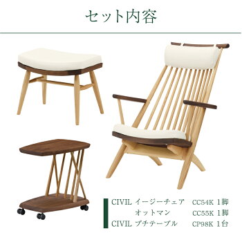 商品説明 名称【KASHIWA】CIVIL(シビル) イージーチェア&オットマン&プチテーブル 商品詳細 柏木工を代表するロングセラーシリーズ・CIVIL(シビル)のイージーチェア・オットマン・プチテーブルをセットでお届けします。